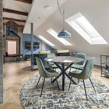 Cozy Penthouseアパ-トメントアパ-トメントには,器具でいっぱいの台所,化粧室,ミニバ- とワ-クデスク付きの客室があります. ヴィリニュス国際空港まで車で15分,Vilnios stバス停まで450mです.
